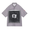 100% cotton. Short sleeves. Regular point collar. Fly placket. Graphics on front and back. Silicone patch on upper left sleeve. Side slits at hem. Wide cut. Bio-washed. Made in Japan.
